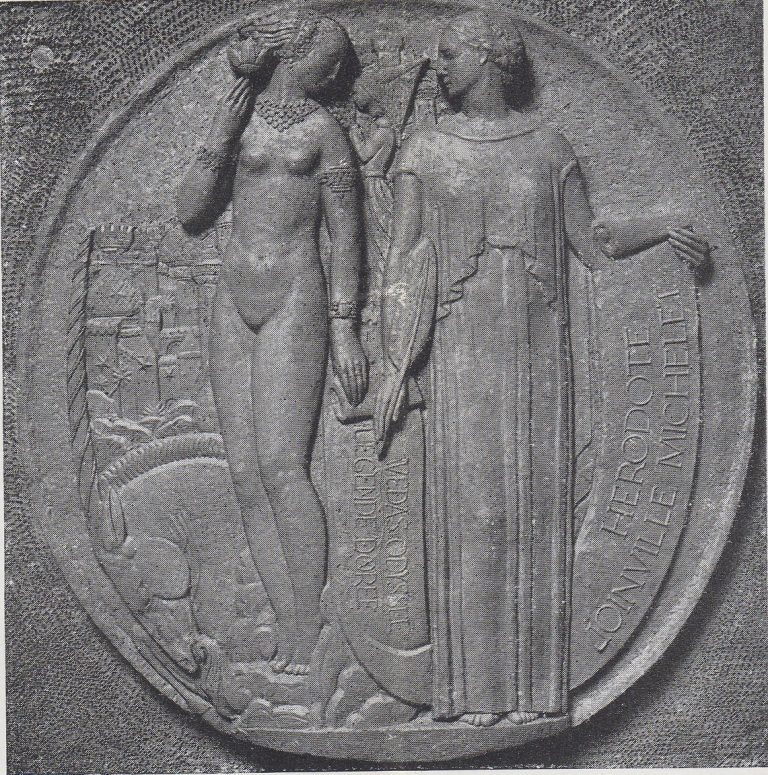 Le séjour d’Albert de Jaeger à la Villa Médicis, de 1936 à 1938, est décisif. Rome lui offre à la fois un cadre, une liberté et un horizon artistique élargi. Il y développe un langage personnel dans deux directions : d’un côté, un relief très sculptural, proche du bas-relief ; de l’autre, une approche plus gravée, plus nerveuse, où le visage semble suivre le regard du spectateur. Cette double sensibilité restera l’une des signatures de son œuvre.
