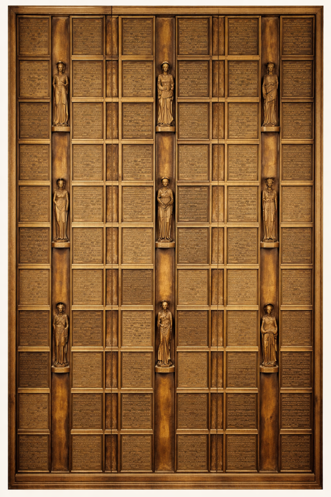 Cette période élargit considérablement son champ d’action. Albert de Jaeger n’y apparaît plus seulement comme un médailleur de talent, mais comme un artiste total, capable d’intervenir sur des objets, des espaces, des ensembles décoratifs et des symboles politiques ou diplomatiques. Les Portes de l’Europe, œuvre monumentale en bronze associée à cette séquence, témoignent de cette ambition à la fois artistique et historique.