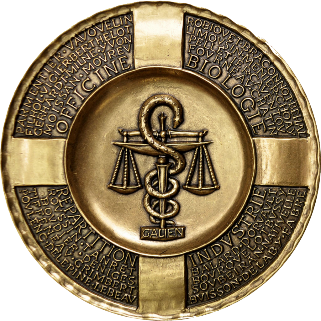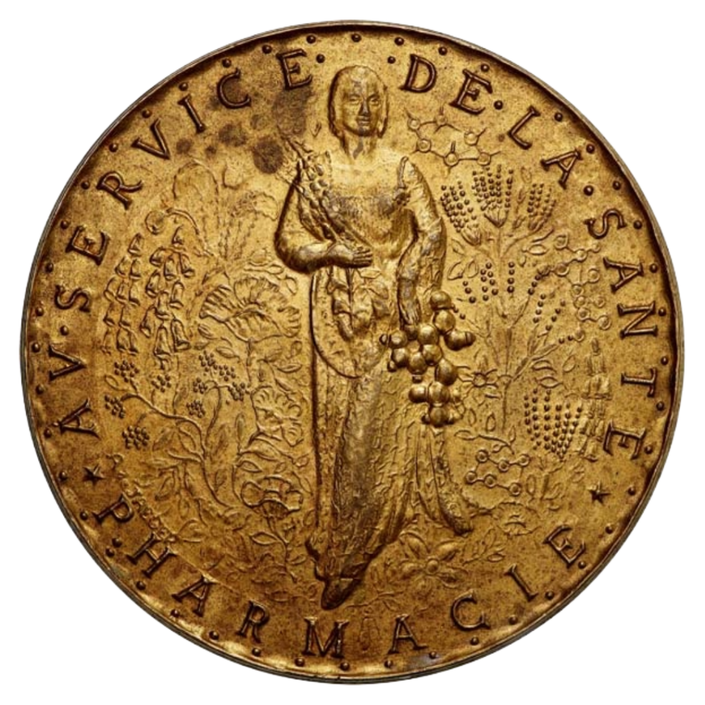 La Pharmacie s’inscrit dans l’ensemble des œuvres qu’Albert de Jaeger consacre aux disciplines de santé. À travers une composition symbolique, elle évoque la connaissance scientifique, la préparation du remède et la transmission du savoir pharmaceutique. Par son relief et sa précision, cette médaille traduit le rôle essentiel du pharmacien dans le soin et la santé publique.