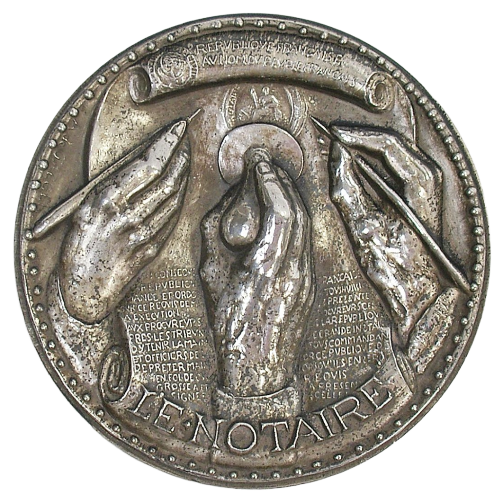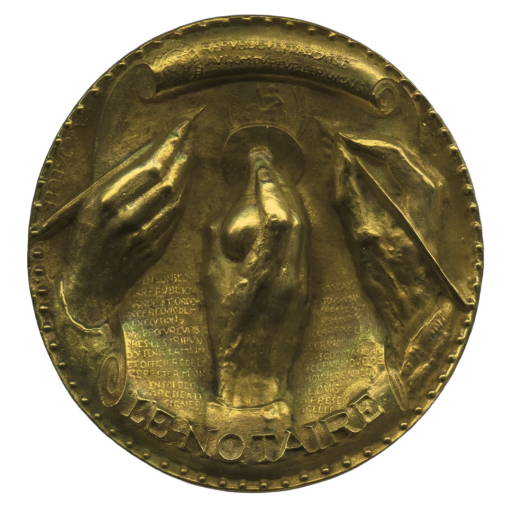 Albert de Jaeger a également créé des médailles destinées à représenter des métiers et des corps professionnels. Parmi les plus emblématiques figurent celles consacrées à la médecine, à l’avocat et au notariat. Ces œuvres traduisent en relief les valeurs propres à chaque profession : savoir, autorité, défense, transmission, rigueur ou service.